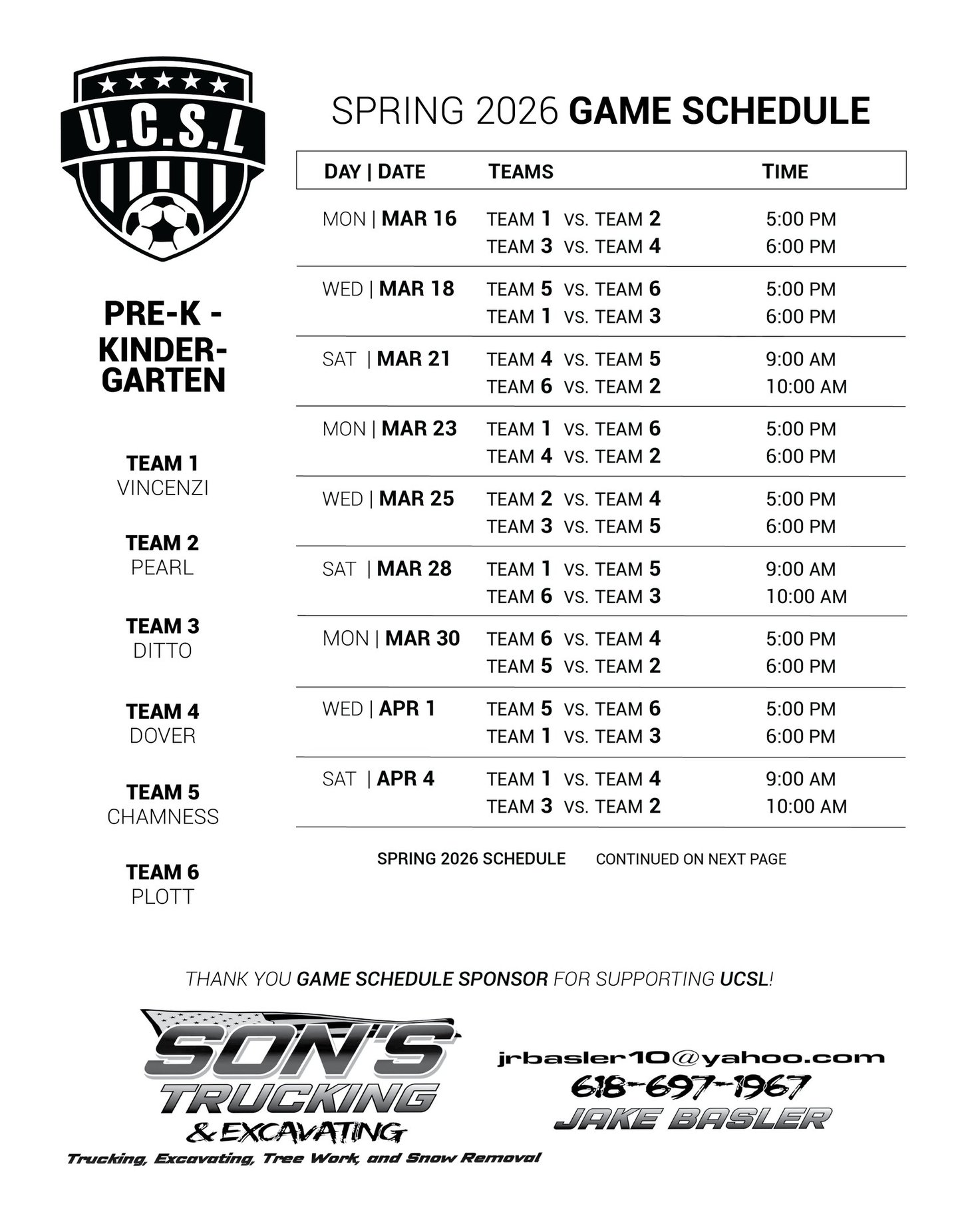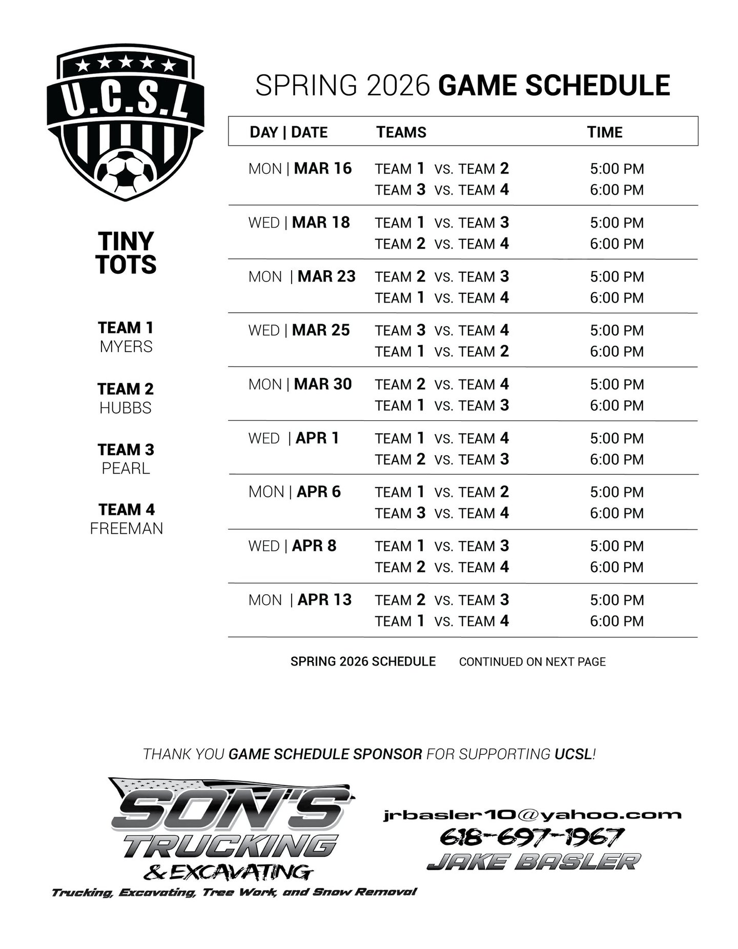 SPRING '26 SCHEDULES