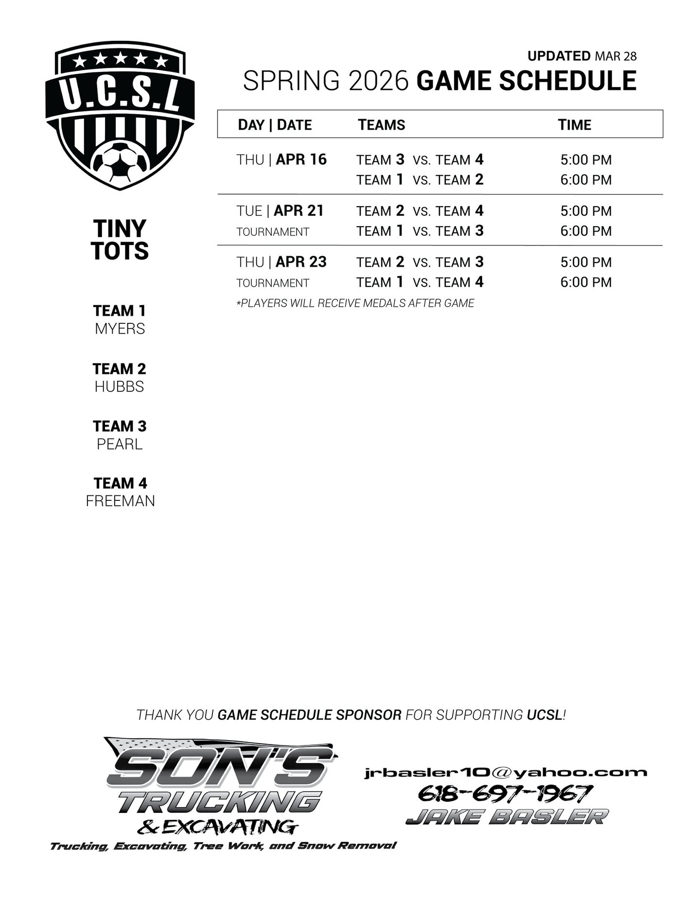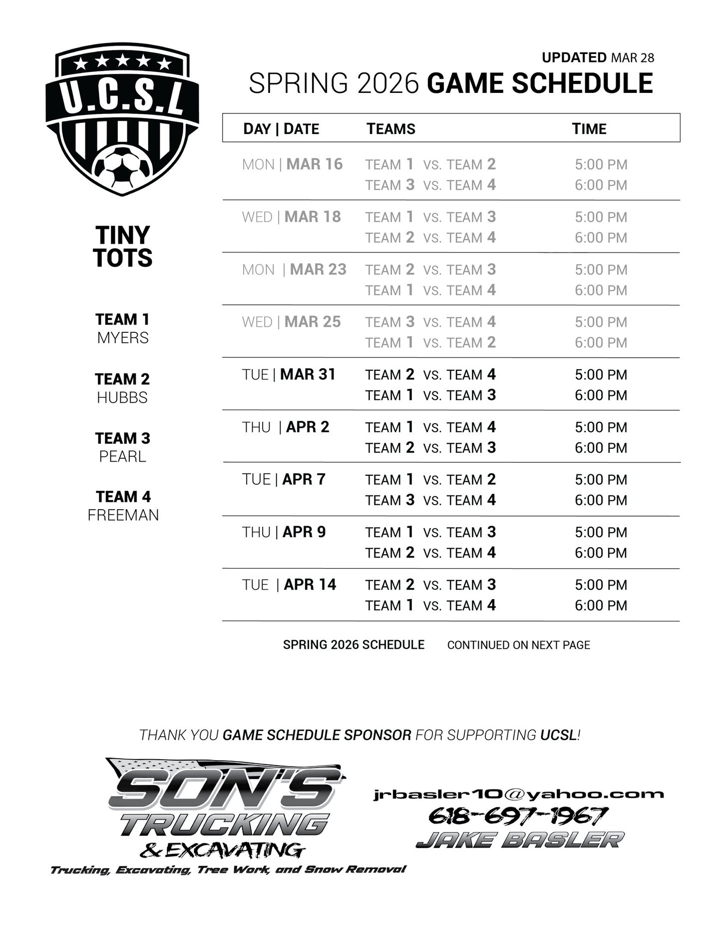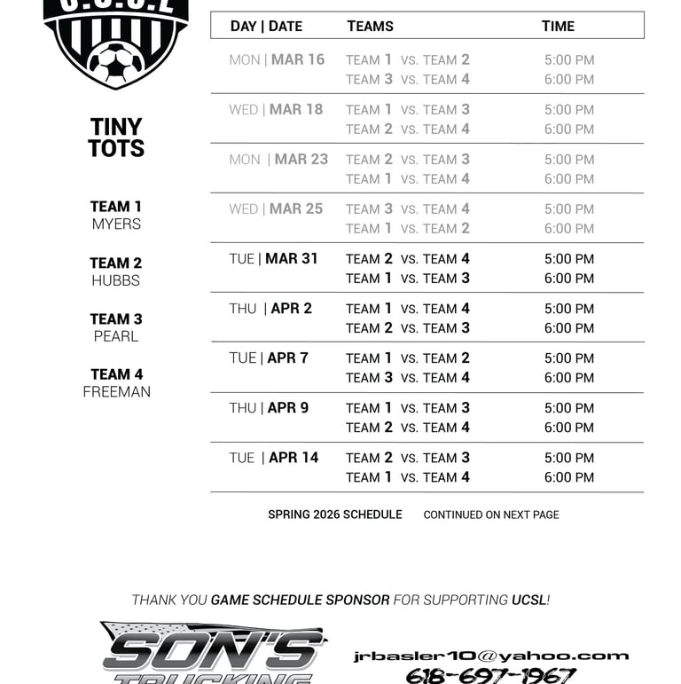 SPRING '26 SCHEDULES